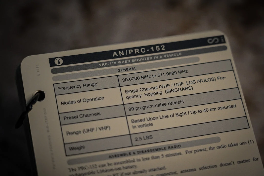 Quick guide to the operations of the AN/PRC-152, General information, Controls, indicators, and connectors. Set-up, load channel (vulos), Channel preset, Channel comsec, AN/CYZ-10 data load, receive OTAR, receive ERF, Loading vulos, ,scm, hpw, comsec keys. Line of sight vulos, Satcom, Situational awareness.