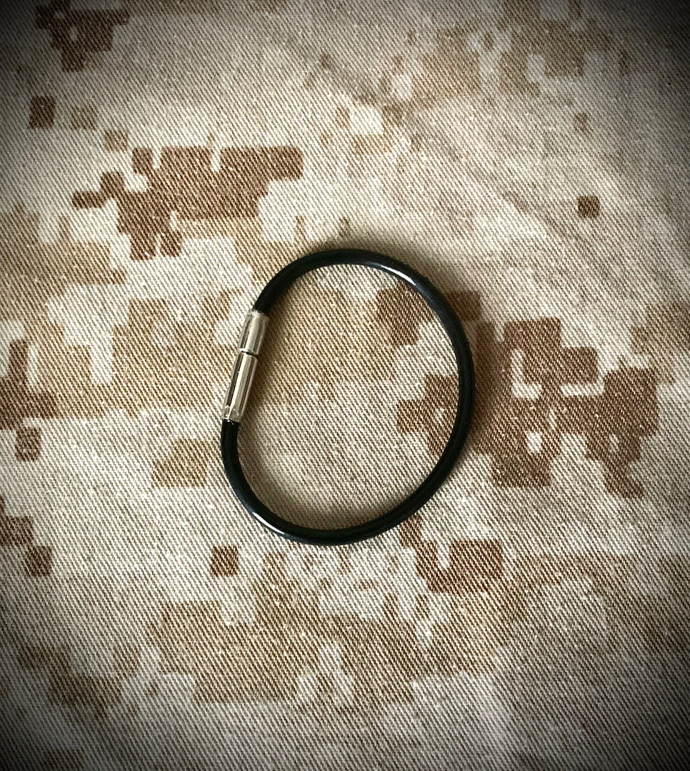 Strong, flexible, corrosion resistant aircraft grade cable ring. Unique patented ball-knob and socket closure lock and unlocks easily. Binds THULS products / handbooks or attaches any gear to MOLLE packs.
