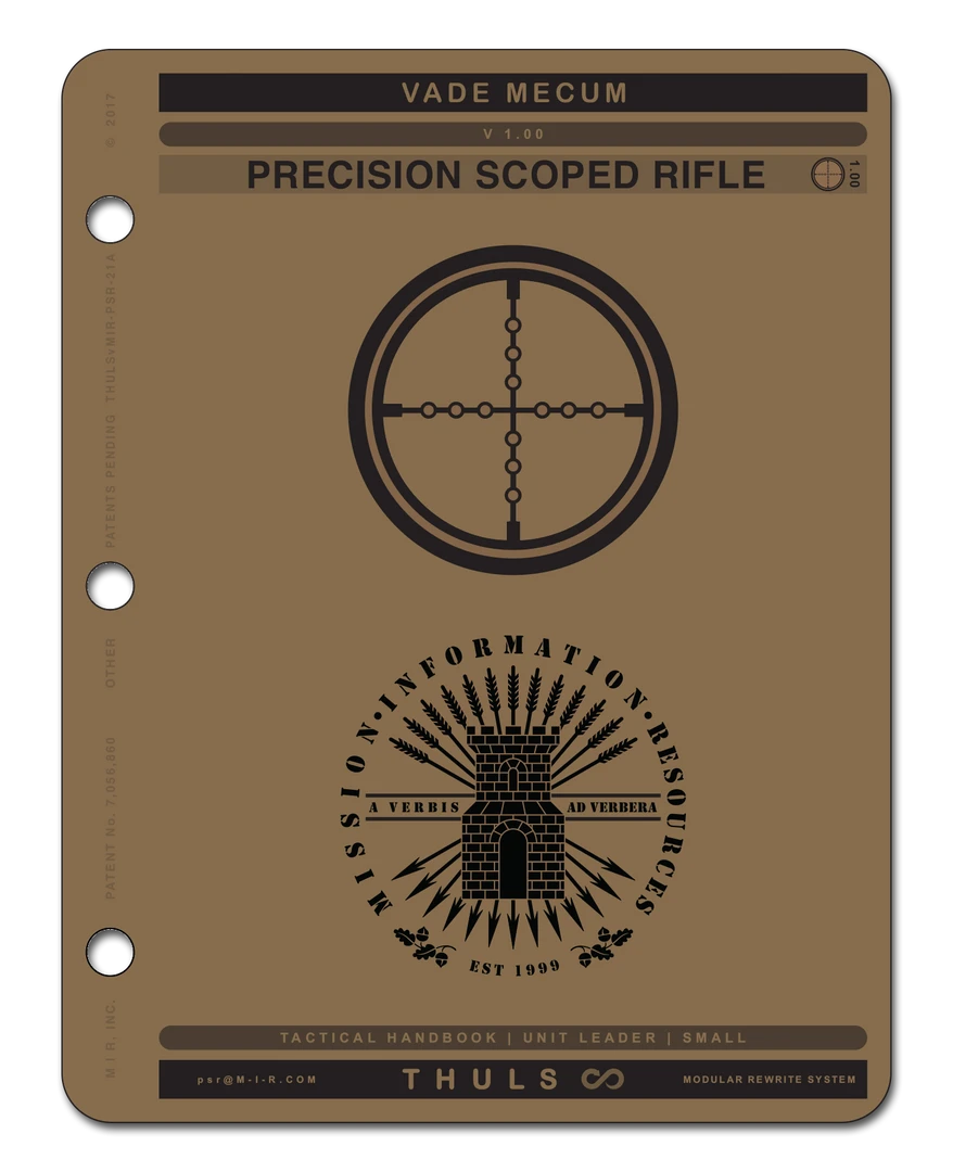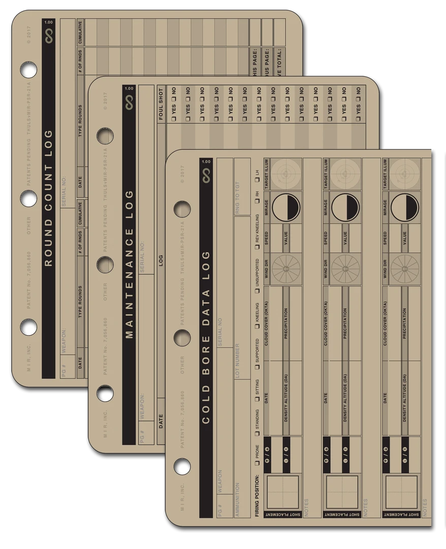 All the basic data records for long range shooting in a convenient pocket form factor. Waterproof and virtually indestructable record keeping to log and improve your long range shooting. Contains Gun Data record, Movers, Round Count Log, Maintenance Log, Cold Bore Data Log, Atmospheric information/Density Altitude, Wind Clock / Relative Wind values, Wind Observation Methods, Target illuminations, Calculations & Conversions, Angle Corrected Range (distance | degrees), Mils Range Estimation (yards | inches), Common Objects fillable form, Atmospheric record, Zero/Grouping Target record, Silhouette Target record, Circle Target record, Grid Target record, blank grid page.
