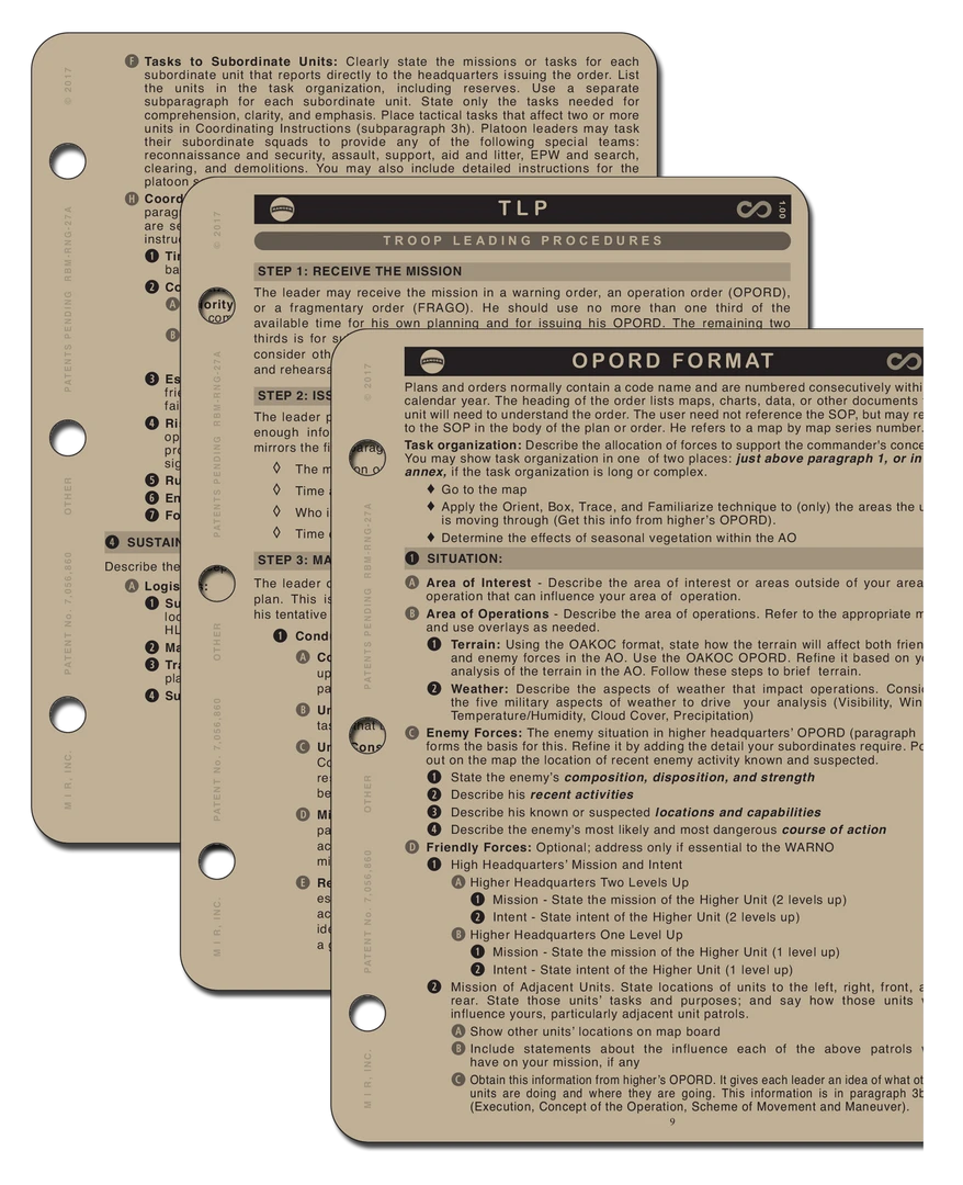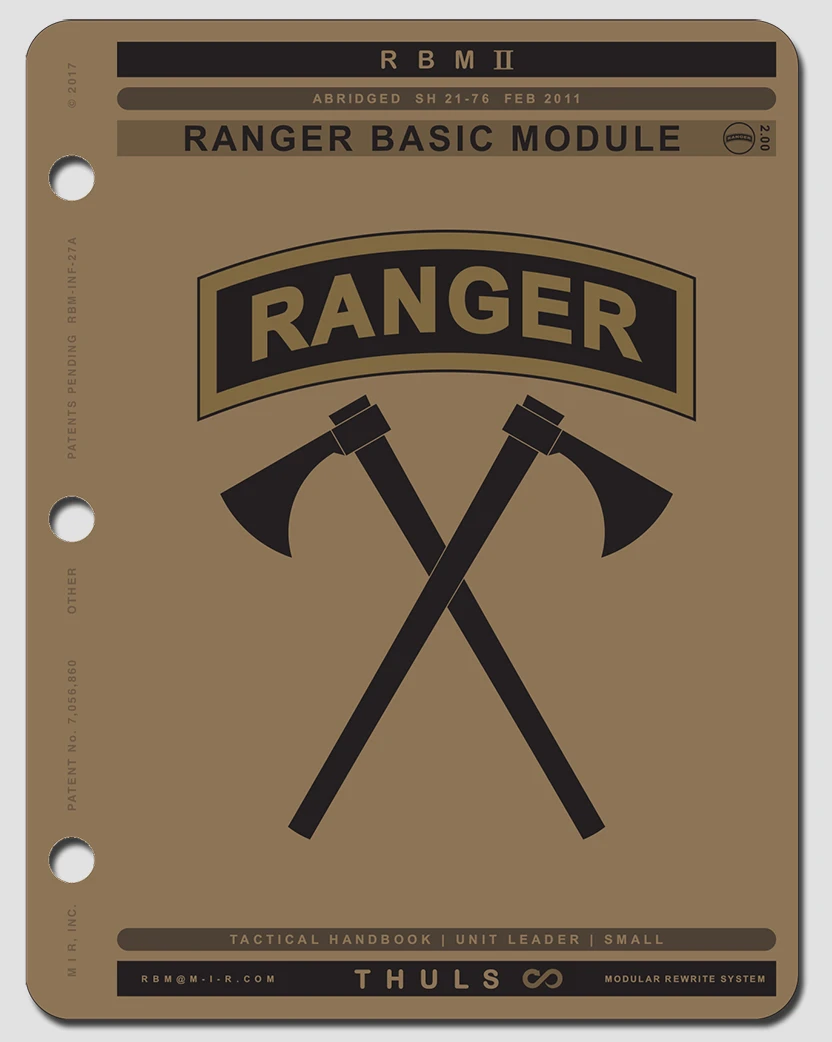 Updated Military Coyote color covers with tan pages. Approved for use at Ranger School and created with the input of U.S. Army Ranger School Instructors, the Ranger Basic Module is intended to provide a Ranger School student the “Tools to Succeed” throughout the course of instruction and, more importantly, throughout his career in the Operating Forces. The THULS RBM has already been adopted by a number of Army infantry units as the standard module issued to team and squad leaders and has immediate application among other units within the Army.