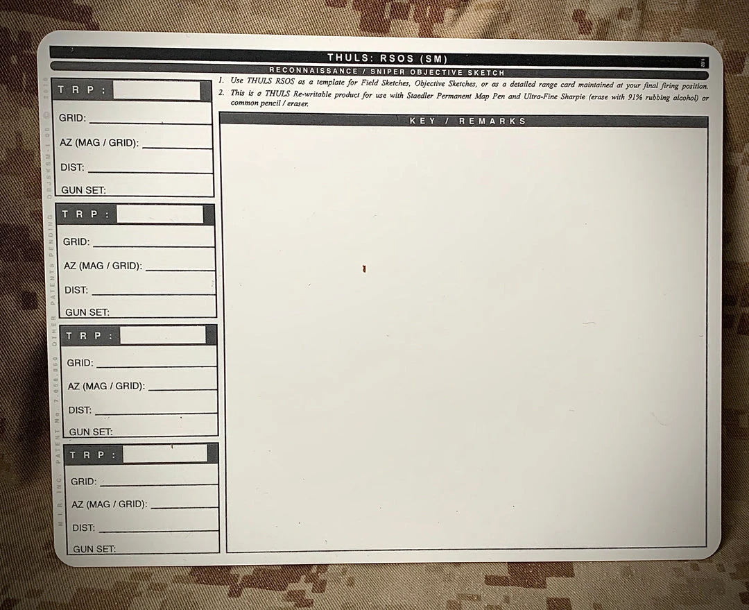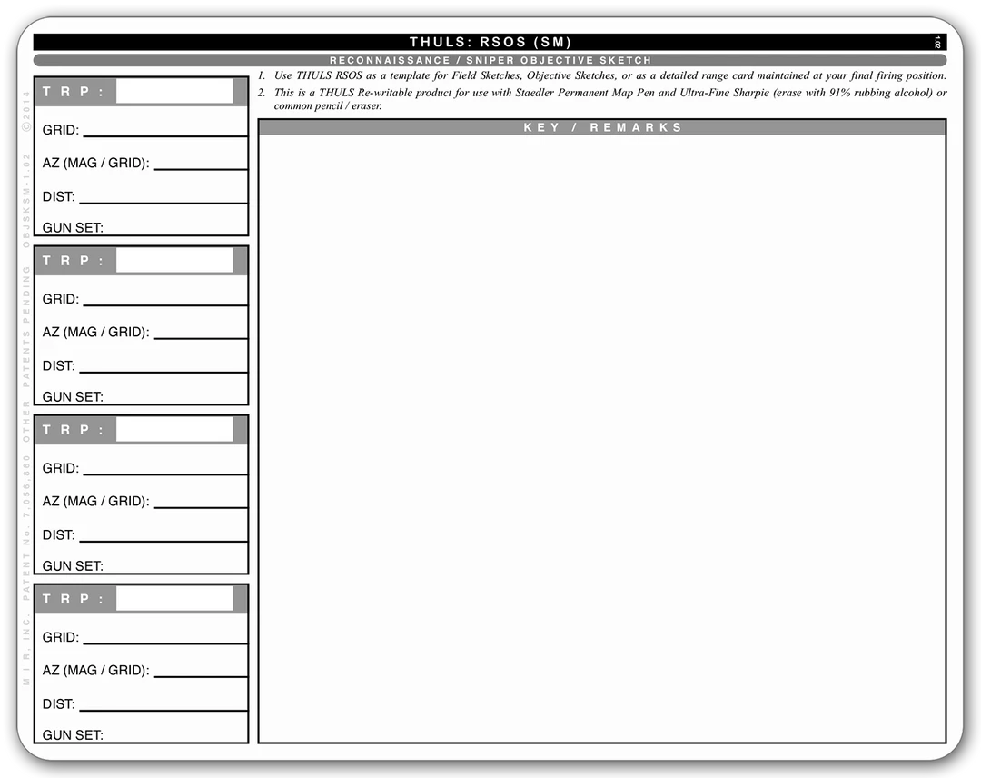 Developed to provide Snipers and Reconnaissance personnel a professional tool for field/objective sketches which doubles as a detailed Range Card for use at a Final Firing Position.